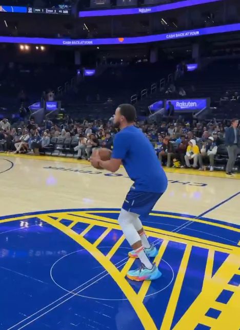 NBA官方社交媒体晒出视频,库里在热身时大秀三分投射,连中logo三分。